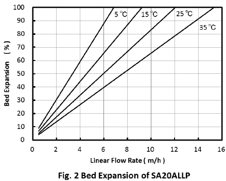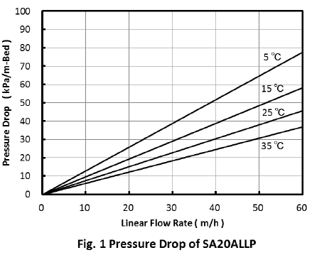 每種溫度和流量下的近似壓降正常下行操作中DIAIONTM SA20ALLP樹(shù)脂的床深的米如下圖所示。