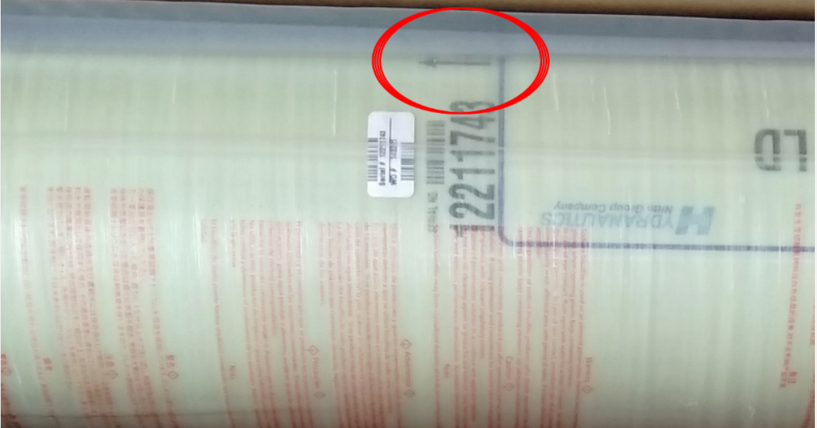 在找我們的反滲透ro膜安裝方向時(shí),其實(shí)有一個(gè)簡(jiǎn)單的方法,就是如下圖所示我們一般ro膜的膜元件上會(huì)有一個(gè)小箭頭,就是指的進(jìn)水方向,根據(jù)這個(gè)箭頭然后對(duì)照進(jìn)水方向安裝肯定是沒(méi)錯(cuò)的。