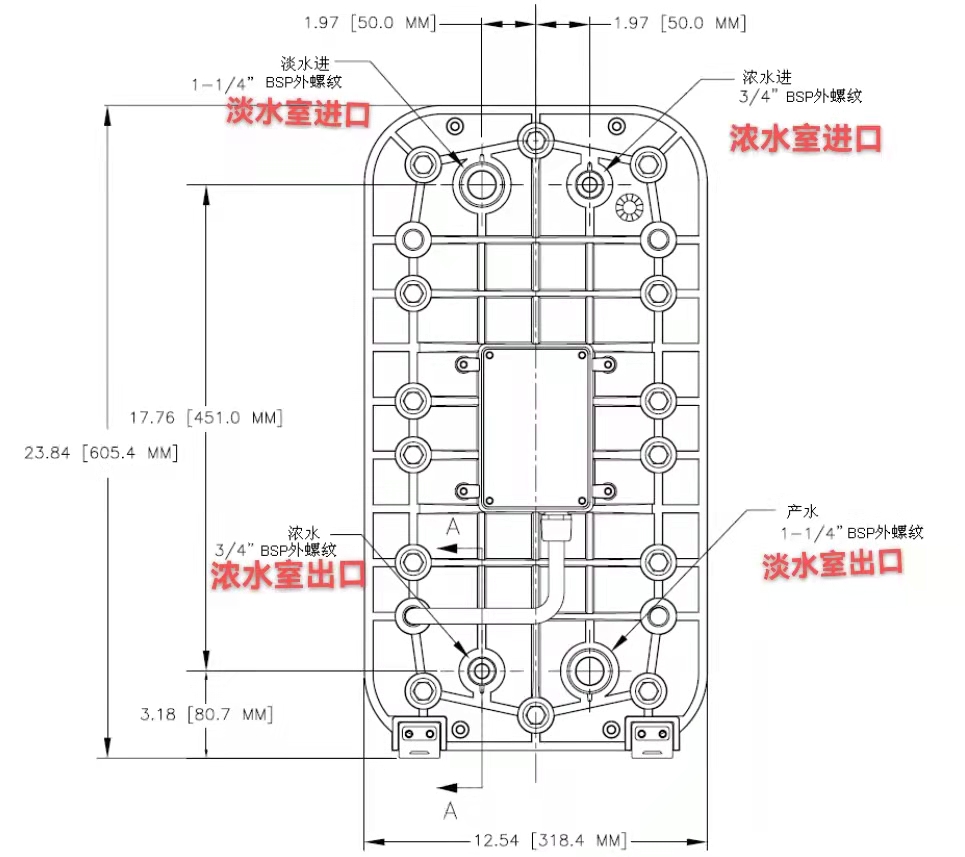 西門子edi膜堆有一個熱塑型橡膠端板,端板上澆鑄有四個外螺紋的管道連接口,便是其四個進出水口。情況如下圖所示。